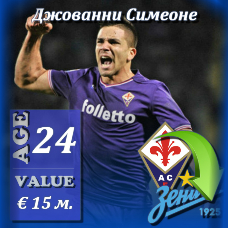 Петербургский «Зенит» принял решение расстаться с нападающим Сердаром Азмуном. «Сине-бело-голубые» продадут иранского форварда текущим летом, если получат выгодное предложение по его трансферу. Азмун пользуется большим спросом на трансферном рынке и привлек внимание уже нескольких именитых европейских клубов, в числе которых лондонский «Арсенал», итальянский «Наполи», римский «Лацио» и испанская «Валенсия». Параллельно руководство «Зенита» приступило к поиску замены иранскому игроку. В качестве одного из основных кандидатов рассматривается нападающий итальянской «Фиорентины» - Джованни Симеоне — сын знаменитого тренера мадридского «Атлетико». Текущий сезон 24-летний аргентинец проводит на правах аренды в «Кальяри», поэтому, наверняка, «фиалки» не будут возражать против того, чтобы продать игрока. Однако, итальянцы хотят получить за своего нападающего сумму в размере 15 миллионов евро. Боссы петербургского клуба рассчитывают сбить эту стоимость примерно в два раза.