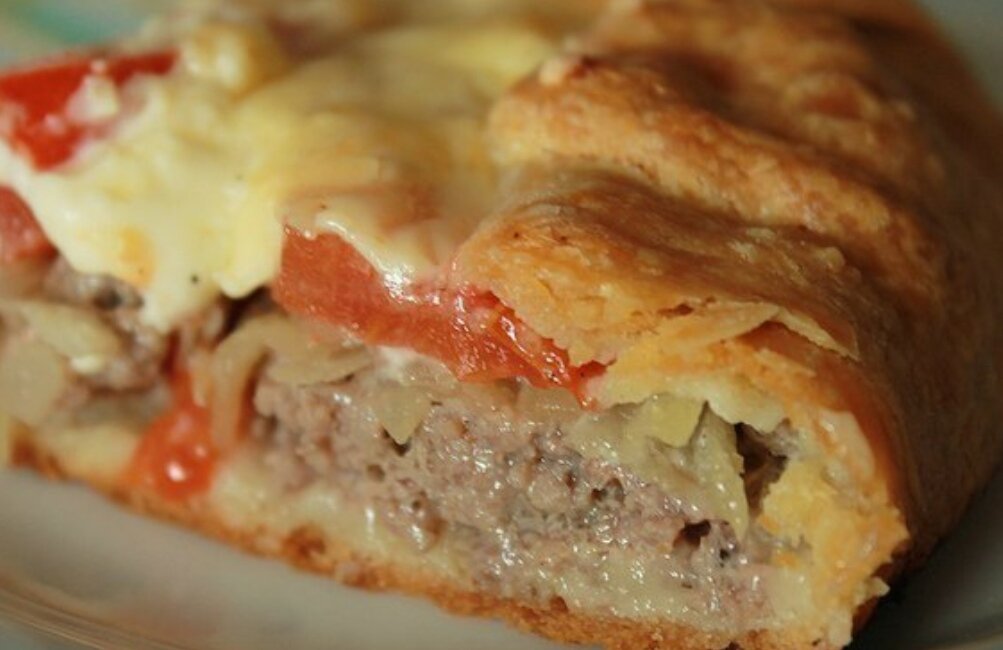 Мясной пирог Пирог просто восторг!! нежное картофельное тесто и много-много сочной и ароматной начинки.... советую попробовать!! Пирог вкусен и горячий, и холодный!! Ингредиенты: Для теста: 200 гр. картофеля, 200гр. муки, 1 яйцо, 50гр. сливочного масла, соль. Для начинки: 500гр. свинины (или фарша), 2 болгарских перца, 1 помидор, 2 небольшие луковицы,, 100 мл. жирных сливок (33-38%), 100 мл. молока, 2 небольших яйца (в заливку), 2 ст.л. томатной пасты, соль,перец, немного тертого сыра. Приготовление: Картофель мелко нарезать и отварить в подсоленной воде до готовности. Затем воду слить, картофель размять. Добавить яйцо, масло, хорошенько перемешать. Всыпать муку и замесить тесто. Выкладываем его в разъемную форму, делая бортики. Отправляем в морозилку, пока готовится начинка. Перец нарезаем некрупно, слегка обжариваем. Лук измельчаем, обжариваем на отдельной сковороде, добавляем мясо, нарезанное мелкими кубиками, обжариваем почти до готовности, солим. Добавляем перец и мелко нар