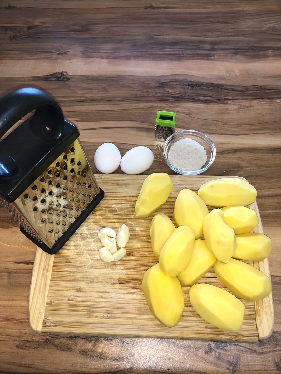 1. Ингредиенты: картофель(10-12 средних) чеснок(4 зубчика) мука (2 стол. ложки) 2 яйца соль масло растительное для жарки 2. Трём картофель на крупной тёрке. Ждём пару минут и отжимаем, сливаем лишний сок. Добавляем тертый на мелкой тёрке чеснок, соль и два яйца. Перемешиваем и подсыпаем муку, размешиваем. 3. Разогреваем сковороду с маслом и ложкой выкладываем драники. Жарим на среднем огне первую сторону, переворачиваем и жарим вторую сторону уменьшив огонь под крышкой. 4. Выкладываем на бумажную салфетку чтобы впиталось лишнее масло.