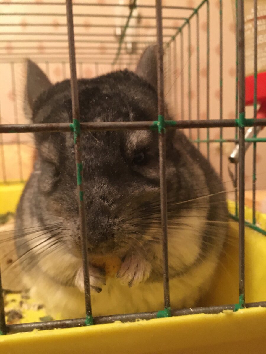 Это Кузьма. Он шиншилла и очень симпатичный малый. Добрый, игривый, общительный. Никогда не думала, что шиншиллы такие умные. Кузя перевернул мой взгляд на них кардинально. Он прекрасно знал как его зовут, откликался, давал погладить бочек и животик, любил вкусняшки( сушеные груши и яблоки, лепестки роз, орехи), соблюдал чистоту( своеобразную) в клетке и очень радовался купанию в Вулканическом песке. Долго гулял по квартире. Бегал от своей купальни ко мне на кухню, гремел всем, что под лапы попадёт, по дороге гонял кошку, шлепал по моим ногам и весело общался повизгивая. После, вцепившись в прутья клетки сотрясал ее с огромной силой. Милый пушистик. Ручной и прикольный. Левое ушко слегка повреждено, но это его совсем не портило. Любишь же не за красоту. Позавчера он умер у меня на руках. Симптомы очень похожи на человеческий инсульт. И врач, вызванный и приехавший ночью, не смог спасти. Вроде бы понимаю, что это всего лишь домашний питомец, жизнь скоротечна и люди тоже смертны, но т