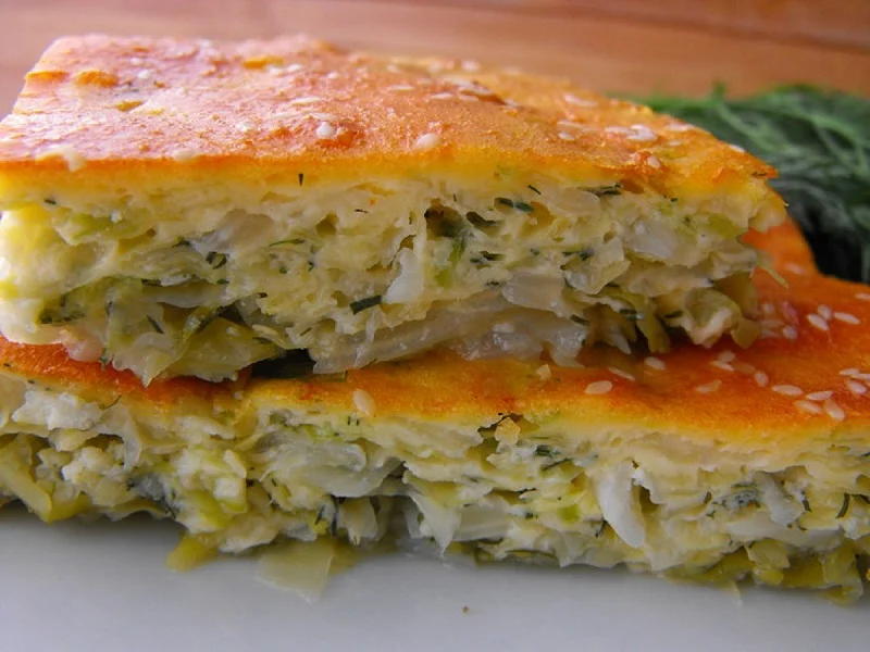 Выпечка порадует ваших близких, а готовить ее можно довольно часто. Ведь продуктов понадобится немного и получается недорогое и вкусное блюдо. Нам понадобится: Для теста: Для начинки: Рецепт: Начнем готовить с начинки. Нарезаем капусту тонкой соломкой, добавляем мелко нарезанный укроп, солим, перчим по вкусу. А чтобы ломтики не были слишком жесткими, слегка обминаем их руками. Оставляем заготовку пока в сторонке и замешиваем тесто. Тесто: ! Кефир желательно использовать комнатной температуры, для этого заранее его достаньте из холодильника ! В миску вбиваем 3 яйца, добавляем соль и сахар. Перемешиваем венчиком или вилкой до однородной массы, взбивать не нужно. Добавляем сюда кефир и соду, перемешиваем. Вливаем растительное масло. Теперь добавляем просеянную через сито муку. Наверное все уже знаем, что при просеивании мука обогащается кислородом и тесто получается более мягкое и пушистое. Венчиком размешиваем до однородной массы. Тесто должно получится в меру густое, как на ола