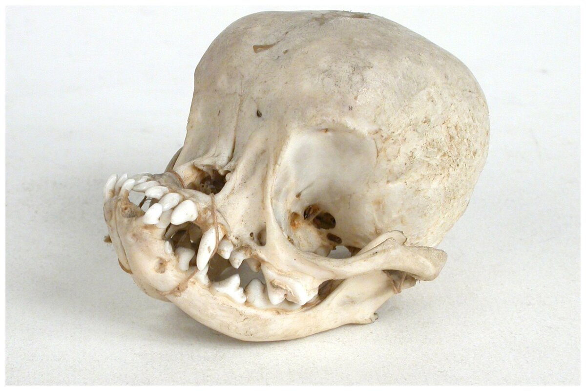 Всем привет! Нам часто попадаются на глаза останки уже вымерших животных. По телевизору и в интернете много научной (и не очень) информации про ископаемых, потому нам привычно видеть скелеты динозавров, но при этом, мы можем и не догадываться как выглядит череп домашнего мопса. А выглядит он вот так: Внешность собаки этой породы и без того весьма чудная, но её череп совсем уж странный. Однако это не заслуга природы, всё это сделал человек, путем селекции и отбора. Тем не менее, эволюция может быть ещё более изобретательной. Далее я представлю вашему вниманию скелеты разных животных, а вы листайте помедленнее и постарайтесь угадать, кому они принадлежат. Начнём, от простого к сложному: Скелет №1 Уверен, почти все поняли что это змея. Но самые внимательные из вас наверняка заметили примечательную деталь на кончике хвоста, так ведь? Всё верно, этот скелет принадлежит гремучей змее. Хотелось бы обратить особое внимание на строение нижней челюсти - она раздвоена. Теперь вы понимаете, ка