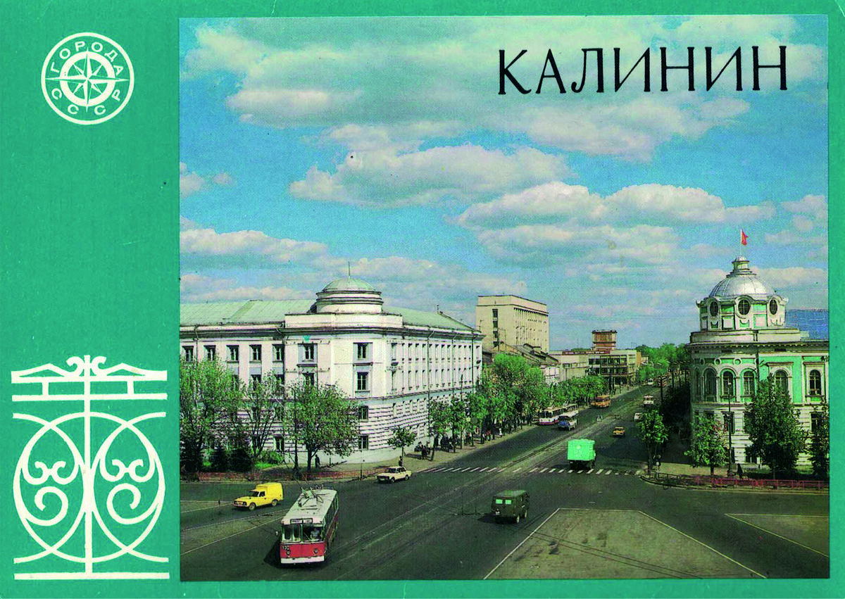 Ныне Калинин промышленный, культурный и административный центр. Не забыты в городе традиции старых мастеров - только рабочие профессии стали другими: выпускают здесь станки с программным управлением и пассажирские вагоны, синтетические волокна и экскаваторы, шерстяные и ситцевые ткани, швейные и трикотажные изделия, печатаются детские книги и школьные учебники, энциклопедии, красочные альбомы и открытки. В 1971 году за успешное выполнение пятилетнего плана по развитию промышленного производства город награжден орденом Трудового Красного Знамени. Здесь работают несколько научно-исследовательских институтов, четыре вуза, среди них университет, три театра, филармония, цирк, Дворец спорта с искусственным льдом.