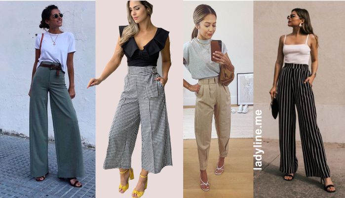 Для составления праздничного и элегантного летнего аутфита базовые минималистические брюки можно смело «подружить» с обувью на каблуке, которая добавит образу игривости, женственности и сексуальности. Правильно подобранный крой брюк + оверсайз размер + обувь на каблуке — данное гармоничное сочетание не только делает женский образ стильным, но также визуально стройнит фигуру.