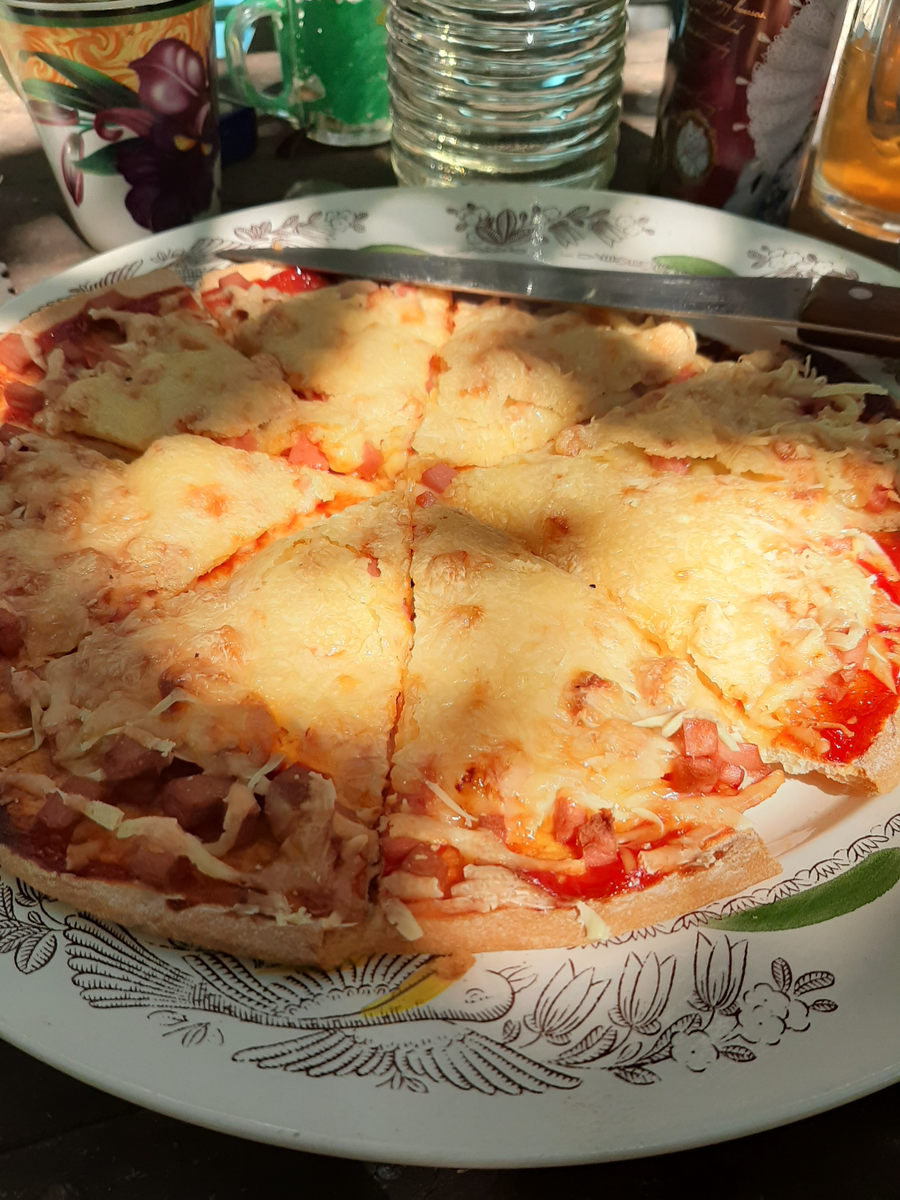 В прошлые выходные племянник (4 года) захотел на даче приготовить пиццу, что мы с ним вместе и сделали. Так как это первый опыт приготовления пиццы на даче, то я не стала делать тесто самостоятельно, а взяла уже готовую основу. Для приготовления детской пиццы мы взяли: Так как пицца готовилась для ребёнка, то майонез, грибы, копчёную колбасу и перец с помидорами мы исключили. Колбасу я порезала на небольшие кубики, а сыр натерла на крупной тёрке. Основу хорошо смазали кетчупом, положили колбасу с сыром и отправили запекаться в духовку. Сковороду я не стала смазывать маслом, так как основа сухая и не прилипает к сковороде. Духовка у нас в уличной плите, поэтому несколько раз пришлось покрутить сковороду, чтобы сыр равномерно расплавился, заняло это минут 20. Даже из небольшого количества ингредиентов пицца получилась вкусной, поэтому не бойтесь экспериментировать даже с обычными блюдами в непривычном для приготовления месте. Всем приятного аппетита и подписывайтесь на мой канал.