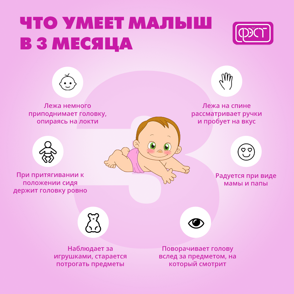 - Лежа на спине умеет немного приподнимать головку, опираясь на локти