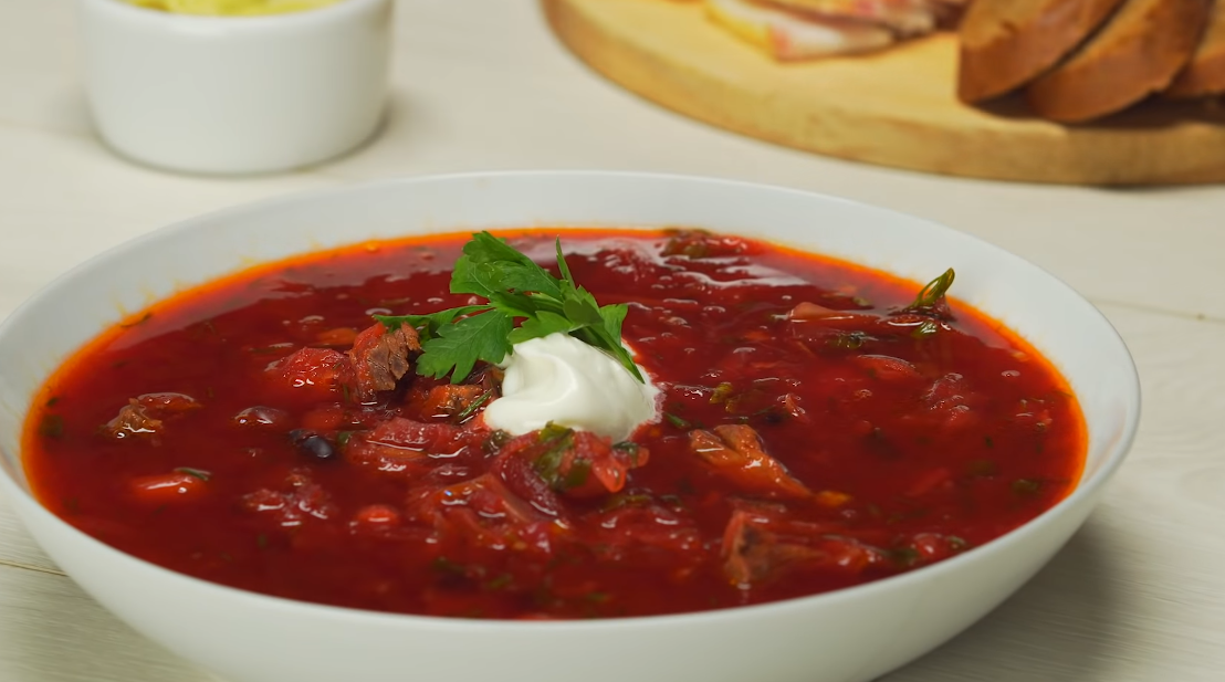 Еще со времен Древней Руси борщ считался неотъемлемым элементом обеденного стола. Даже сейчас это блюдо не теряет своей популярности по всему миру, однако, среди моих знакомых многие женщины его не готовят, считая, его рецепт сложным. Сегодня я развею этот миф❤ Ингредиенты, которые нам понадобятся: ✔ 2,5 литра чистой питьевой воды ✔ 500 грамм говядины, можно взять на кости ✔ 200 грамм лука и одна головка среднего размера для бульона ✔ 400 грамм свеклы ✔ 150 грамм морковки ✔ По желанию можно добавить сладкий перец 200 грамм ✔ 600 грамм капусты ✔700 грамм картофеля ✔ Литр томатного сока, либо томатная паста, разбавленная водой ✔ 2 столовые ложки лимонного сока ✔ Соль, сахар, перец и лавровый лист по вкусу Чесночная заправка по вкусу ✨ 3 зубчика чеснока ✨ 100 грамм сала ✨ Петрушка и укроп Шаг первый - приготовление бульона: Перед началом готовки необходимо промыть мясо, затем залить его холодной водой и добавить очищенную головку лука. Бульон доводим до кипения, снимаем о