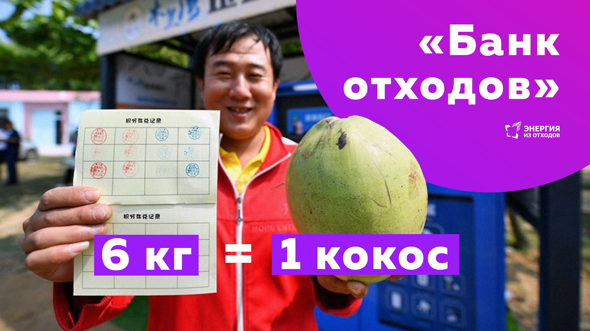 Китайский «Банк отходов» платит продуктами за собранную на пляжах тару и упаковку. Несколько килограмм отходов можно обменять на бутылку воды или кокос. Ван Сяочунь и ее муж, туристы из северо-западного Китая на собственном примере узнали как работает «Банк отходов» на острове Хайнань. Им вручили сумки и они направились на пляж, чтобы собрать отходы. Обломки разбитого стекла, пластиковые крышки, пакеты - все это было под ногами туристов. Примерно через полчаса пара наполнила мешки и положила их в специальный отсек, похожий на банкомат. Он выдал «депозитную книжку» с четырьмя марками равными 40 баллам. Позже пара обменяла очки на две бутылки воды. Городское правительство запустила пилотный проект «Банк отходов» в бухте Мулан полгода назад. По правилам туристы могут заработать 10 баллов, собрав 1 кг мусора, а уже 60 баллов можно обменять на кокос. «Мы надеемся, что «Банк отходов» может побудить туристов и общественность принять активное участие в сборе мусора и защите окружающей сред