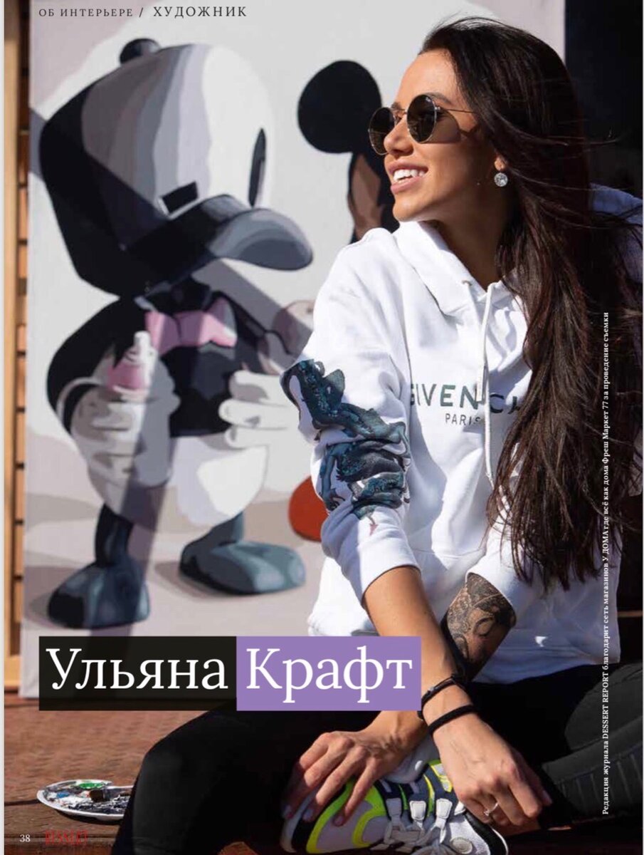 Ульяна Крафт на сегодняшний день одна из самых популярных художников в России. В свои 27 лет девушка получила звание художник года по версии Fashion People Awards. Ее картины стали известны по всему миру. Сложно поверить, но Крис Браун сам написал ей в инстаграме о том, что оценил ее работы. В последствии чего Ульяна написала картину к дню рождения его дочки Роялти. В чем секрет молодой и амбиционной девушки из Москвы? Начало пути Ульяна с самого детства была творческой натурой, закончила художественную школу, но после неё некоторое время не занималась искусством. Впервые заявила о себе, когда закончила курсы аэрографии и начала выходить на звёзд. Также начала работу над гос проектом в Якутии (роспись школы), делала чехлы для мобильных телефонов в стиле Art. Уже тогда в списке ее клиентов было не мало отечественных звёзд. Несколько лет Ульяна занималась любимым делом, которое теперь приносило неплохой доход. О Всемирной славе говорить было ещё рано. Все изменилось, когда она