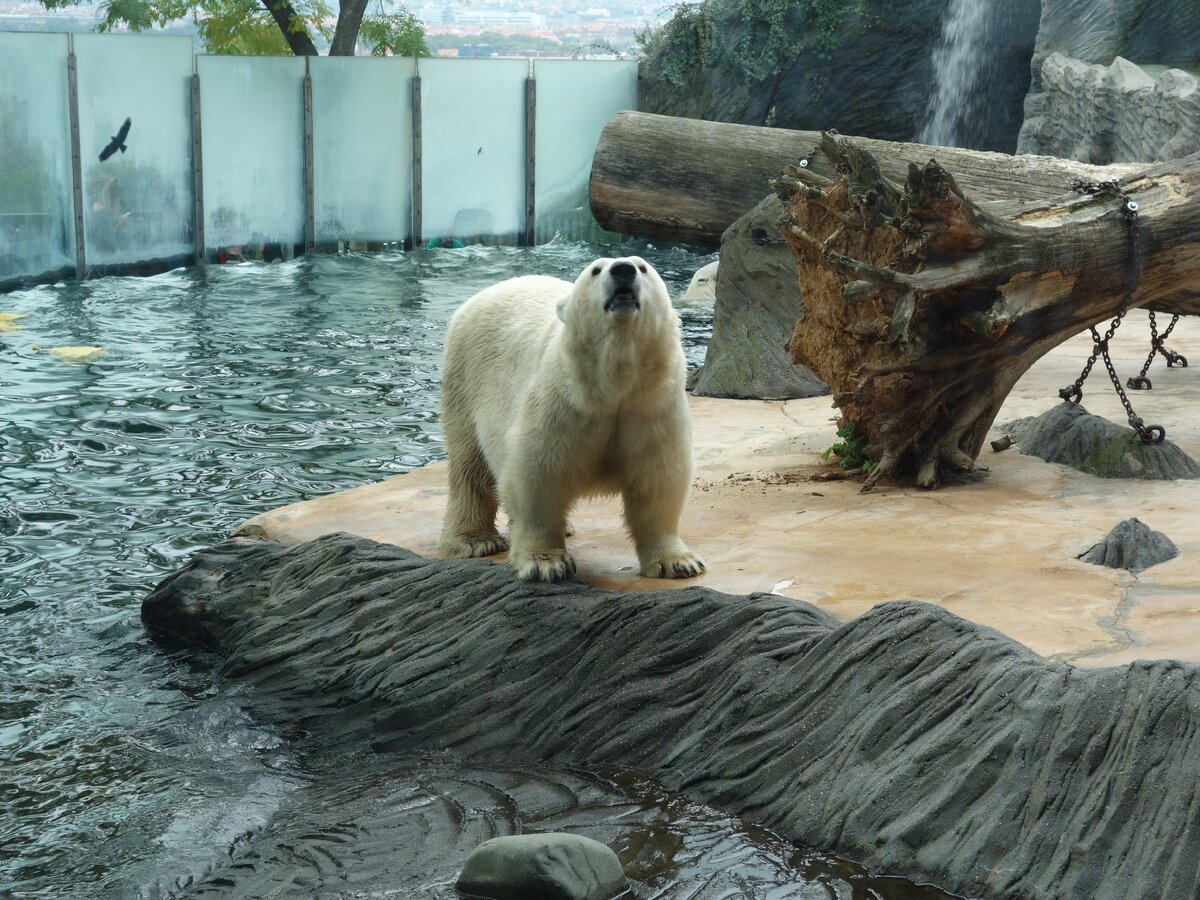 Я снимала эти кадры ровно год назад. Солнце тогда пекло так, что хотелось нырнуть к медведям в бассейн. Не знаю сколько "комнат" в замке белых медведей, но бассейнов два. Сверху тенёк от деревьев и великолепные виды на Прагу, на Пражский град. Хотела бы я стать белым медведем. А ведь не так давно их едва не выселили с их "элитной виллы". Планировалось разбить на этом месте огромный пандариум, но затея с пандами отменилась в 2018 году и белые медведи остались, где были.