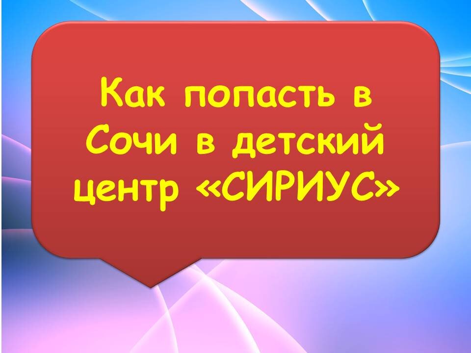 «Сириус» - это образовательный центр в городе Сочи Краснодарского края. Создан он на базе олимпийской инфраструктуры по инициативе Президента В.В. Путина. Цель работы Образовательного центра «Сириус» – выявлять, развивать и поддерживать одарённых детей. Так что если у вашего ребёнка есть достижения высокого уровня в области искусства, спорта, естественнонаучных дисциплин или в техническом творчестве есть реальный шанс побывать в незабываемом путешествии. «Сириус» работает круглый год. Каждый месяц туда приезжают 800 детей в возрасте 10-17 лет из всех регионов России. Их сопровождают более 100 преподавателей и тренеров, которые тоже не бездельничают и повышают в Центре свою квалификацию. Если вы прошли конкурсный отбор, то проезд и пребывание в Центре для детей бесплатные. Приезжает ребёнок туда не просто отдохнуть, а самое главное, учиться. Обучение в Центре проводят ведущие педагоги спортивных школ, лучшие учителя и преподаватели физико-математических, химико-биологических шк
