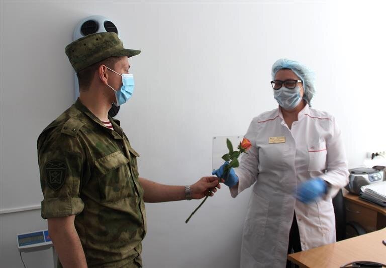 «Благодаря вашей плазме будет оказана помощь больным с большой кровопотерей, и тем, у кого нарушены факторы свертываемости крови. В дополнительной плазме также нуждаются пациенты после тяжёлых травм, операций, ожогов. Так что сегодня вы делаете большой вклад в спасение десятков жизней. И для нас праздник организовали. Всегда приятно получать цветы, а от мужчин в погонах - особенно!», - с улыбкой поблагодарила военнослужащих заведующая отделом заготовки крови и ее компонентов Юлия Симонова