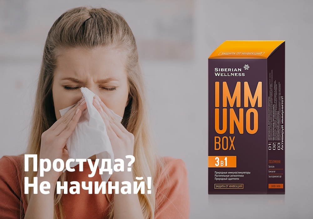 В транспорте – грипп, на работе – ОРВИ, в телевизоре – пугающие новости о китайском вирусе.🙀 Не прятаться же весь сезон, заперевшись дома?🏚 Тогда поддерживайте свой организм – кроме него с вирусами никто справляться не умеет.😊 Закаляйтесь, ведите здоровый образ жизни и, конечно же, не забывайте принимать IMMUNO Box! 🎁IMMUNO Box – комплексная защита организма: натуральные иммуностимуляторы, растительные антисептики🌱 и природный адаптоген для тех, кто не согласен провести в стерильном боксе сезон простуд. О продукте Комплексная защита и поддержка организма в сезон простуд и инфекций! Шесть мощных растительных экстрактов, усиленных цинком, оказывают выраженное укрепляющее действие на весь организм: повышают активность иммунных клеток, значительно увеличивают их количество и ускоряют процесс восстановления. Природные антисептики cоздают эффективную защиту против инфекций и вирусов, предотвращают развитие заболевания. Натуральный адаптоген ускоряет клеточное обновление, оказывает выр