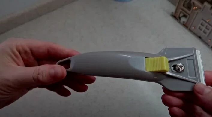 Недавно зашла в Фикс Прайс и тут же заприметила особое приспособление, предлагаемое производителем как «универсальное средство для очистки нагара с кухонной утвари». Раз уж купила, решила не просто использовать, а провести независимый и полностью объективный тест! Плита и сковородка оказались первыми «жертвами». На фото, кстати, показано, как они выглядели «до» и «после» очистки. Очистка сковородки и варочной поверхности Производитель заверяет, что его устройство идеально подходит для очистки как металла, так и кафеля, стекла, прочих кухонных поверхностей. Фото скребка - вот. Устройство изготовлено из качественного и прочного пластика, снизу находится не менее прочная стальная пластинка. Сверху прибора есть кнопка: при нажатии на нее пластика выходит из пластикового корпуса. Для того чтобы показать все более наглядно, я несколько дней не мыла ни сковородку, ни плиту. Впрочем, давайте же приступать к работе! Инструкция от своего производителя говорит, что нужно взять немного посудо