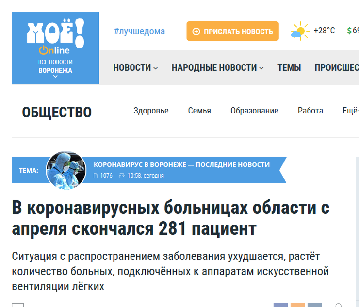 Губернатор Гусев полностью провалил борьбу с эпидемией коронавируса. Теперь это можно и нужно чётко зафиксировать. Хотя времени на подготовку и принятие решений было более, чем достаточно. Последние 1,5 недели Воронежская область входит в число регионов, где фиксируют больше 200 случаев в день. Всё потому, что из всех мер, которые воронежские чиновники ввели ещё в марте, сейчас остались только закрытые торговые центры. «Масочный режим», который всё продлевают и продлевают, попросту не работает: маски носят не все, а маршрутки и общественные места в городе переполнены уже с середины апреля. Но даже в эти цифры, которые выглядят довольно пугающими, верить невозможно. Вот и журналисты «Моё» выпустили интересный материал: Нам известно, что часть районных больниц и многие городские больницы (БСМП №1, БСМП № 8, больница № 20, часть областной больницы) были перепрофилированы для лечения пациентов с коронавирусной инфекцией. Принято считать, что работать они начали 1 апреля.