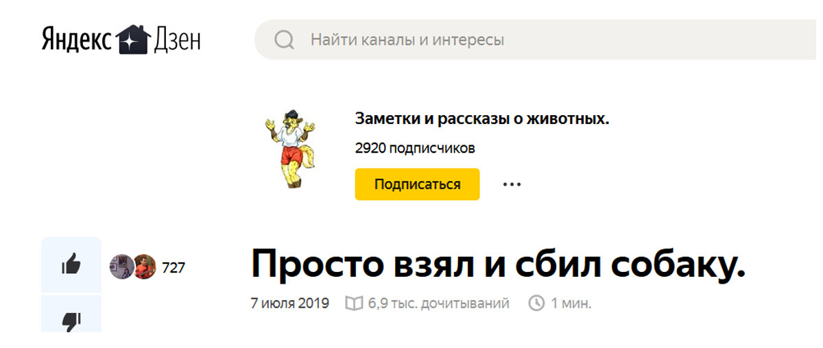 Добрый день, Дорогие читатели! Несколько дней назад я выложил на своём канале статью, которая называлась "История собаки, которую боятся спускать с поводка". В ней я писал о том, как женщина подобрала на трассе собаку, у которой мать погибла под колёсами автомобиля. В итоге статью ограничили к просмотру. Я смирился, плюнул на их дебильную систему, о которой уже много написано на просторах рунета, но сегодня, чисто случайно, наткнулся на материал похожего содержания с названием "Просто взял и сбил собаку", которая набрала за год 6,9 тыс. дочитываний. Из чего я делаю вывод об избирательности Дзена в решении ограничений просмотров к статьям разных авторов. Ранее я уже сталкивался с этим, когда написал статью "Исход схватки крокодила и слона". Мне просмотры ограничили, а у другого автора похожая публикация с заголовком "На что надеется глупый крокодил, хватая такого монстра за хобот?" набрала 300 тысяч дочитываний. И что же предложила мне в ответ на моё обращение служба технической поддер