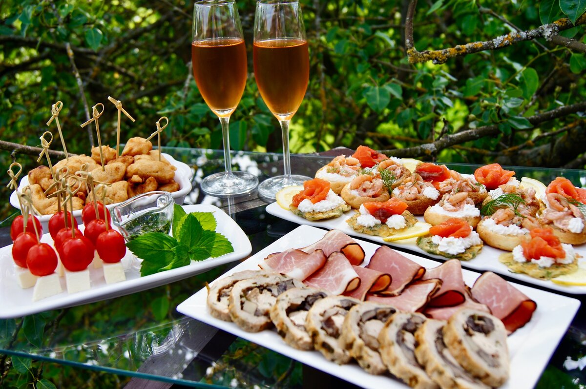 Здравствуйте, дорогие читатели! На выходных ко мне на дачу наконец-то приехала моя подруга, с которой мы не виделись целых три месяца! Конечно же, я подготовила несколько вкусных закусок для наших долгожданных посиделок. Мужчин с нами не было, так что все блюда были созданы специально для нас двоих — двух девчонок, готовых насладиться вечером 😊. Кстати, погода в тот день была просто замечательная, поэтому я решила устроить стол на балконе. Никаких горячих блюд не планировалось — мы заранее договорились, что хотим только закусывать и потягивать прохладные напитки. А теперь расскажу, что же украсило наш праздничный стол. Возможно, вам приглянутся некоторые идеи, и вы захотите повторить их для своего особого случая. Давайте посмотрим? Профитроли я делала сама, есть отдельная статья с подробным рецептом, посмотрите тут БУЛОЧКИ ЗАВАРНЫЕ. Состав закуски с креветками: Заварные булочки - 10 шт. Креветки очищенные - 150-200 г Творожный сыр - 150 г Укроп - по вкусу Соевый соус - 1 ст.л. Чесно