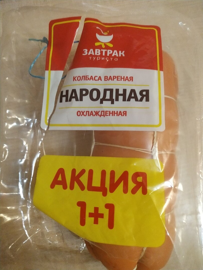 Вы любите скидки? Предвосхищаю ответ: а как же! Кто ж их не любит. Время у нас нынче такое, что приходится экономить на каждой копейке. А колбаску вы любите? Безусловно. Это же самый классический завтрак: бутербродик в с пластиком колбаски и чай. Она же спасает и в дневной перекус. Сытно и вкусно. Так вот я, как истинная любительница колбасы и скидок, зашла в "Магнит". Там мясных изделий на любой кошелек найдется, даже на самый худой. Колбаску я выбирала на окрошку, поэтому сильно дорогая мне точно не нужна была. Выбор пал на товар по акции. Два батончика "Народной колбасы" от "Завтрака туриста" выглядели очень аппетитно. За килограмм лакомства просили всего лишь 200 рублей! Я с радостью взяла товар и направилась к кассе, по дороге прихватив с собой квас. Кстати, а вы на чем любите окрошку? Придя домой, я раскрыла пакет и достала один батончик собачьей радости. Запах у этой радости был так себе. Нет, пахло колбасой, но уж какой-то слишком резкий запах был. Отрезала кусочек, попробова