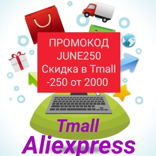 Промокод JUNE250 для скидки - 250 руб в Tmall на Aliexpess !
