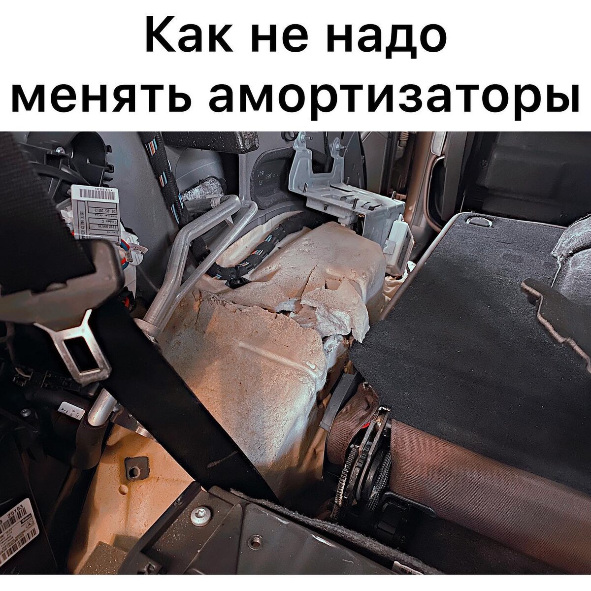Замена амортизатора - обычная процедура, здесь никаких особых навыков и знаний не надо. Снял-поставил. Если говорить о w166, то есть нюанс: для замены задних надо чуть ли не пол багажника разобрать, что занимает много времени («на круг» часов 5-6), но опять-таки, ничего сложного. «Геморрой» только в снятии звукоизоляции, для этого надо отсоединить проводку, снять доп.блоки и только после этого появится возможность подвинуть и не повредить. ⠀ Так вот, зачем это все, если можно просто взять и разрезать? С проводкой возиться, блоками какими-то, можно ведь всё решить за пару секунд - вырезать кусок и все равно, что защита от звука арок начнёт терять свой смысл. Это ведь всё спрятано под обшивкой, владелец даже не узнает, зато быстро 👍🏼 Видимо так думали те, кто менял аморты до нас, на первой фото видите результат. Пособие: «как делать не надо». ⠀ Неоднократно писал, что благодаря партнерской программе с Mercedes-benz у нас есть доступ к запчастям с тех же складов, что и у официальных