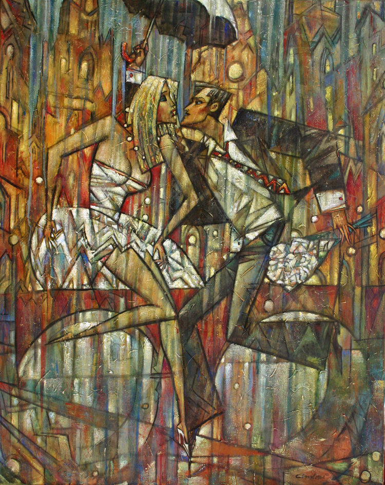 Секрет такого сногсшибательного сочетания в живописности работ. Стоит только присмотреться к L’Amour sous L’Ombrelle из серия Romantique Collection (Романтическая коллекция), и сразу обнаруживается многообразие цветовой палитры. Двое влюбленных целуются под зонтом, но серая одежда, лица и даже дождь раскрываются сотнями нежных перламутровых оттенков – синих, зеленых, желтых и красных, совершенно меняя настроение картины.
