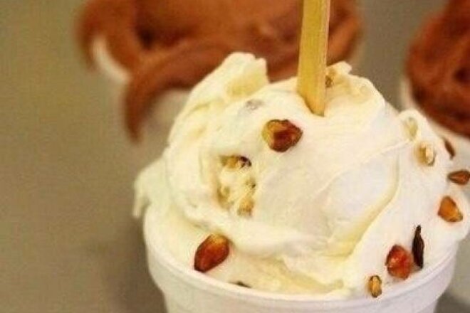 ВАМ ПОНАДОБИТСЯ: Молоко (нежное) - 1 л Мед - 200-250 г Яйца - 6 шт. Ванилин - по вкусу Творог (нежный) Вкус блюда можно разнообразить различными добавками: от орехов до сухофруктов и цукатов. РЕЦЕПТ: 1)Вскипятить молоко с мёдом. 2)Отдельно взбить в пену сырые куриные яйца. 3)Добавить немного горячего молока, массу перемешать и влить тонкой струйкой в емкость с кипящим молоком. 4)Продолжать взбивать смесь венчиком, огонь – слабый. 5)Должны образоваться пузыри. 6)Готовую массу снять с огня, охладить, несколько раз перемешать. 7)Добавить по вкусу ванилин, поставить в морозильную камеру. 8)При готовности добавить нежирный творог, взбить смесь блендером. 9)Поставить охлаждаться и периодически перемешивать. ВАЖНО: Охлаждать мороженое можно в специальной мороженице или же в обычном холодильнике, не забывая его периодически перемешивать, чтобы д