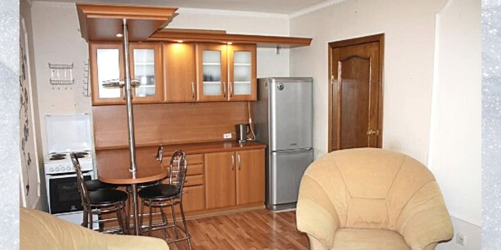 Но собственники решили поменять все местами. Из кухни сделали спальню, а из комнаты кухню-гостиную. Перенесли электрическую плиту из кухни в бывшую комнату, а мойку разместили в санузле. С одной стороны, вроде, удобно, спальня может быть и небольшой, зато появилась просторная кухня-гостиная, получилась «евродвушка».