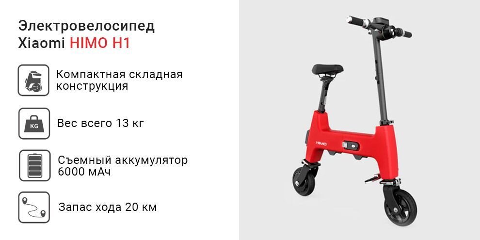 Xiaomi HIMO H1 – настоящее чудо дизайнерской мысли, компактный и удобный электровелосипед, который удобно использовать для городских прогулок, в туристических поездках и просто для моциона и удовольствия. Легкий, надежный, легко складывающийся велобайк можно положить в багажник и даже в рюкзак. Электробайк – незаменимый персональный транспорт в наше непростое время. Возможность с комфортом, на удобном сиденье, доехать до нужного места без использования городского транспорта –это важно. Рекомендуем Xiaomi HIMO H1 именно в качестве личного электротранспорта.