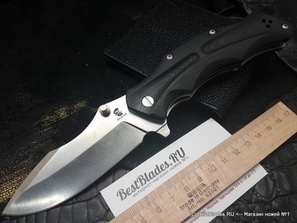 Несмотря на то, что бренд Mr.Blade имеет чешскую регистрацию, его инвестор — из России и работает компания прежде всего для российского потребителя. Ножи данного производителя заслужили реноме суровых клинков, характерными особенностями которых считаются солидная конструкция и хищный дизайн. Одним из примеров такого изделия является и модель HT-1 Stonewash. Такой, знаете ли типичный образец тяжелого фолдера с замашками «тактика». Общее представление Клинок изготовлен из углеродки D2, с агрессивным резом, если особых восторгов не вызывает, то остроту сохраняет прилично. Конечно же не любит ни кислую, ни влажную среду, но если по неосторожности допущены единичные очаги ржавчины, устраняются они банальным школьным ластиком. Буквально за два-три движения. Модель достаточно «долгоиграющая», по отзывам пользователей активно эксплуатируется не меньше 4 лет. Крепить ее лучше на ремень, все же габариты могут доставить заметное неудобство при карманной переноске в кармане. Не может занимать