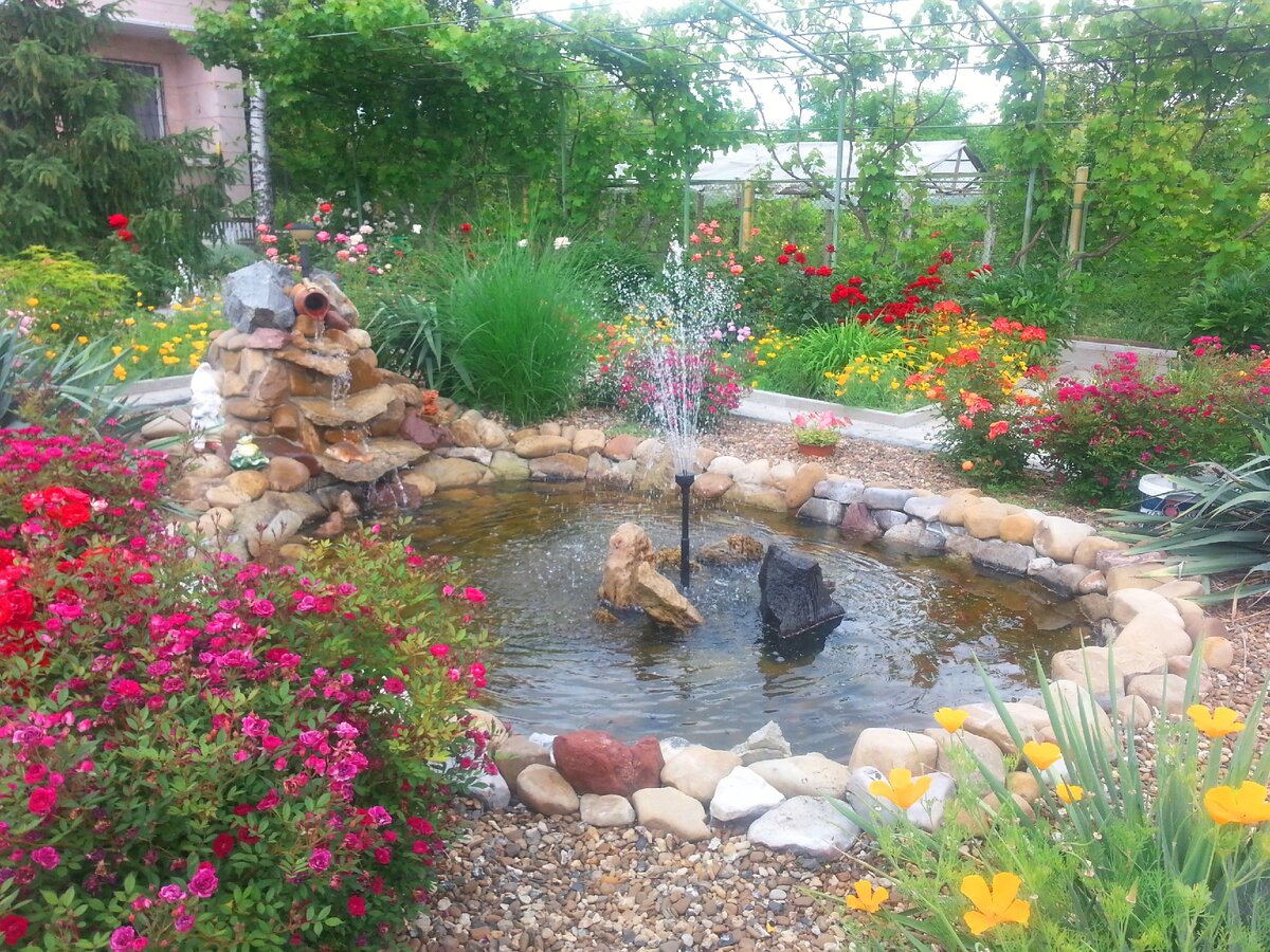 Решил муж порадовать меня в трудный период нашей жизни, когда у меня было диагностировано онкологическое заболевание. И порадовал, соорудил пруд, небольшой водопад и фонтан. Приятно, вода журчит, успокаивает, расслабляет.
