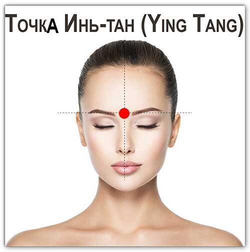 1️⃣Иньтан. Точка между бровями, над носом.Сделайте около 30 надавливаний.