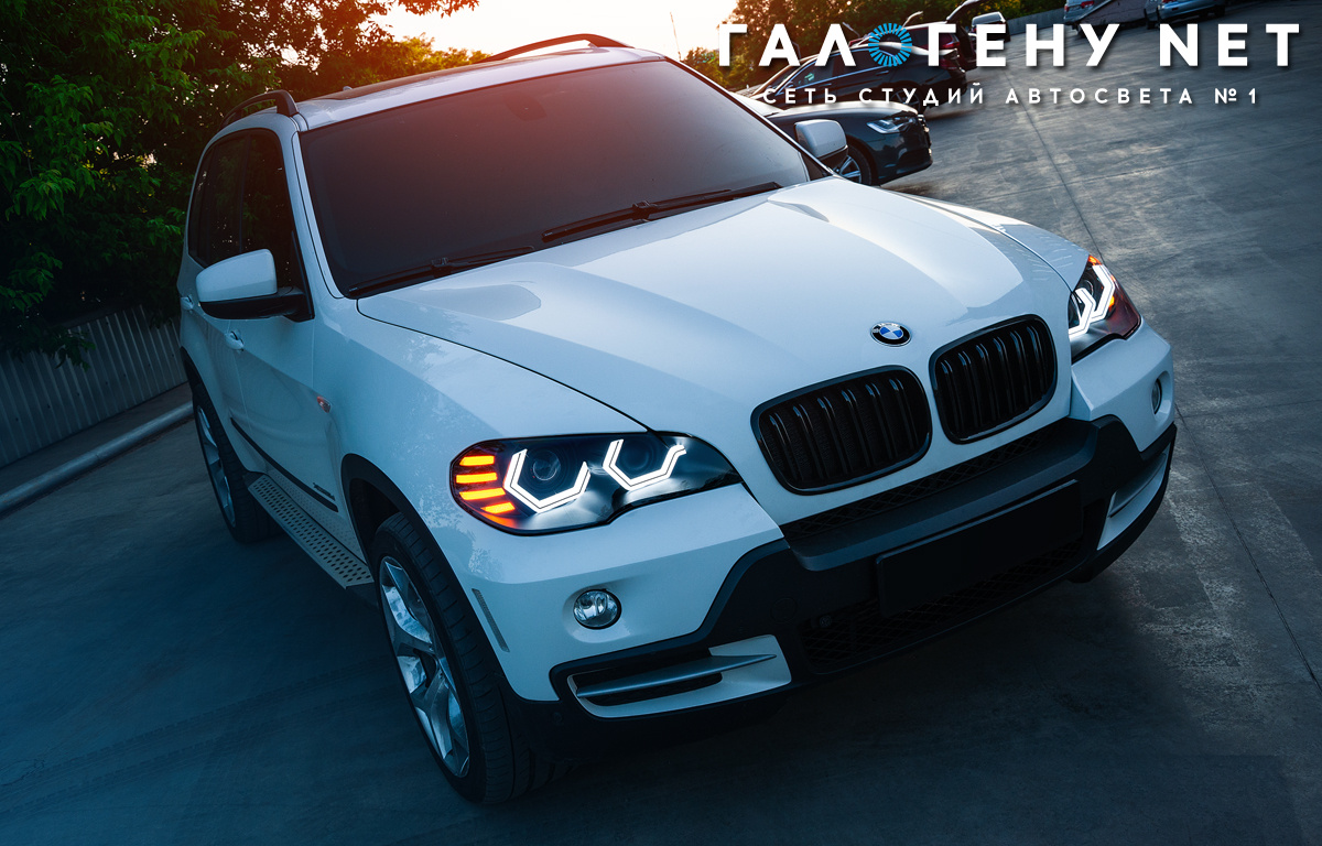 Вот и подоспел наш новый дизайн в области авторских LED ДХО! Вернее даже не самих ДХО — с ромбовидными глазками вы уже знакомы, а секции поворотника! Для BMW X5 были спроектированы 4 полоски для поворотника на каждую из секций! Цвет сигнала очень сочный, а сам поворотник очень яркий, что и визуально выделит, и сделает поездки более безопасными, ведь маневры станут более заметными! Хотя, поговаривают, что одна из самых бесполезных вещей в BMW это как раз поворотники, если вы понимаете о чем мы😅 Но к владельцу этого авто это точно не относится! Более того, такие стильные поворотники возможно даже смогут приучить владельцев к более частому их использованию по назначению, ведь они так кайфово светят🤩 Главное — во всем знать меру! В сочетании с матовой покраской маски ретрофит выглядит просто бомбически! Контраст ромбовидных глазок и поворотника на матовом фоне, на наш взгляд, одно из лучших сочетаний: свет глаз не бликует в фаре от глянца, а мягко растекается. Фальш линза покраски та