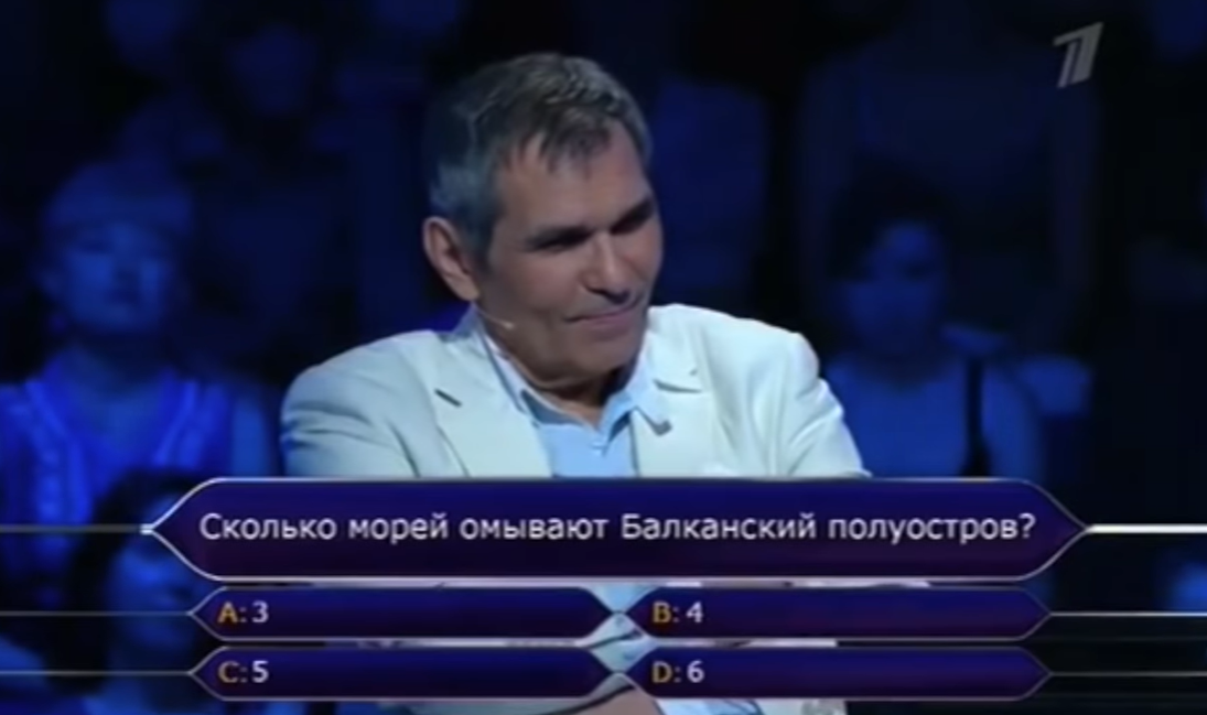 Предыдущие посты: Посмотрел новый "Галилео". Несколько причин, почему мне вообще не понравилось Три шоу с российского ТВ, по которым я очень скучаю Самые странные герои советских мультфильмов Выбираем лучшее шоу в истории России. "Пусть говорят", "Окна", "Прямой эфир" или "Запретная зона"? Парень не смог ответить на первый вопрос в "Кто хочет стать миллионером?". Эпичная ошибка Привет! Прозвучу сейчас как капитан Очевидность, но выиграть главный приз в программе "Кто хочет стать миллионером?" не так уж и просто. Факт. В российской версии данной передачи это происходило всего шесть раз. За 20 лет. Впечатляет. И одними из победителей стали звезды: Бари Алибасов и Данко. Они играли в паре в 2013 году. Что удивило многих, они оооочеень уверенно прошли всю игру. Точнее, прошел Данко. Алибасов.... Как это по мягче сказать.... Больше мешал. Это популярное мнение, не мое. Хотя я с ним и согласен. Финальный вопрос игры звучал так: Рассуждая, Данко быстро взял инициативу в свои руки. Алибасов пы