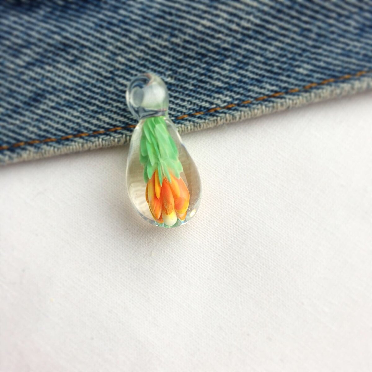 Люблю создавать интересные вещи, такие чтобы ни у кого не было. Так появился этот необычный кулон с цветами. Глядя на него, вы сразу же представляете капельку воды, окутывающую нежные бутоны. Выполненный в технике имплозия, кулон буквально взрывает сознание изнутри. Все мои знакомые не понимают, как я творю такую красоту у себя в мастерской. Цветочек внутри прозрачного стекла — невероятно нежная, тонкая работа. Помню, когда я впервые попробовала технику у меня были сомнения, что моя работа кому-либо понравится, но я продолжала развиваться и творить. В результате я смогла отточить мастерство и создать уникальный кулон. Сам цветочек тоже из стекла. Прекрасно подойдёт под лёгкий летний наряд, хорошо подчеркнёт вашу индивидуальность. Такие изысканные украшения не для всех, а только для самых утонченных и нежных натур, которые хотят привнести в свой образ нежности. Я Предлагаю сочетать его с комбинезоном или юбкой-пачкой — получится идеальный образ. Другие аксессуары к кулону не нужны, он с
