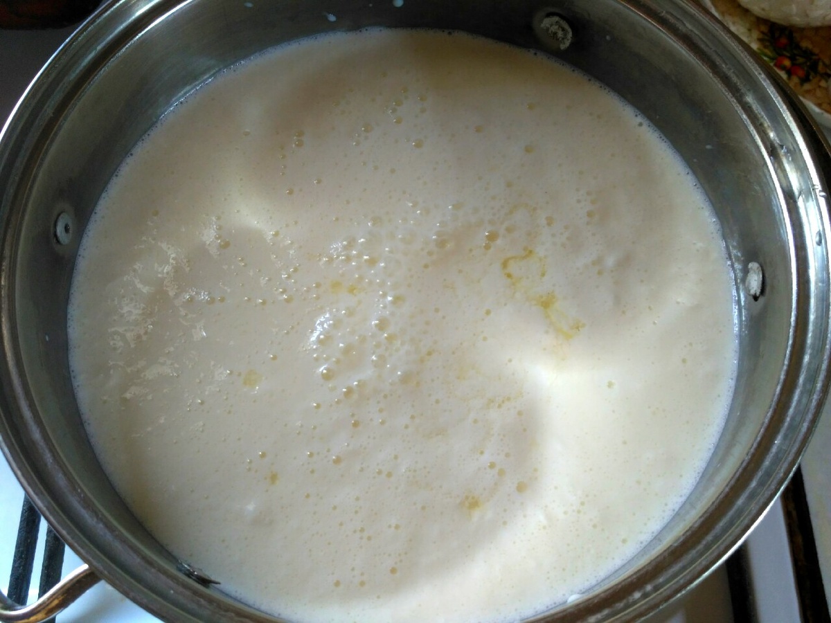 Сварим домашний сыр. А, может, творог? Удивительно, но в Европе то, что мы называем творогом, называют легким сыром. Для нас разницы нет, как продукт называется, главное, чтобы было вкусно. Для приготовления сыра потребуется : Молоко 1 л Кефир 1 л Яйца 3 шт. Итак, приготовим легкий сыр. 1. Берем молоко, кефир и яйца. Все помещаем в кастрюлю. 2. Взбиваем венчиком до пены. 3. Включаем плиту и начинаем нагревать на среднем огне, непрерывно помешивая. Процесс долгий, нужно потерпеть. В ходе помешивания масса в кастрюле будет изменяться. Сначала она будет однородной. Затем постепенно начнет створаживаться. Вот такие удивительные превращения. Пока не увидим хлопья творога, сыра. 4. Откидываем массу на дуршлаг и ставим на высокую миску, даем стечь сыворотке (ее хорошо использовать для приготовления домашнего хлеба) Итак, сыр становится плотным. 5. Ставим дуршлаг с миской в холодильник на 12 часов. Сверху прикроем крышкой. Хорошо это делать на ночь. 6. Через 12 часов сы