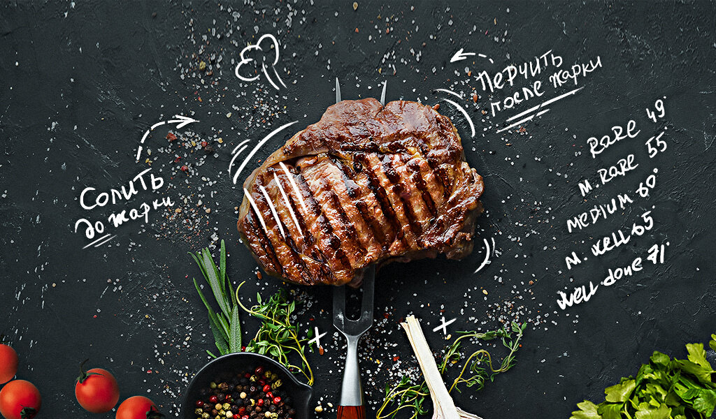 Главное – знать несколько секретов. Ими и поделились шеф-повара Kulinarista, составив понятное и пошаговое руководство – от выбора и покупки мяса до подачи на стол вкуснейшего стейка. Попробуйте, все обязательно получится!