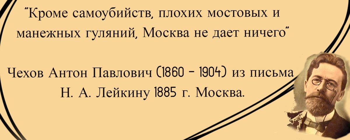Так Антон Павлович отзывался о Москве, когда его семья и он сам переехали туда жить из Таганрога.