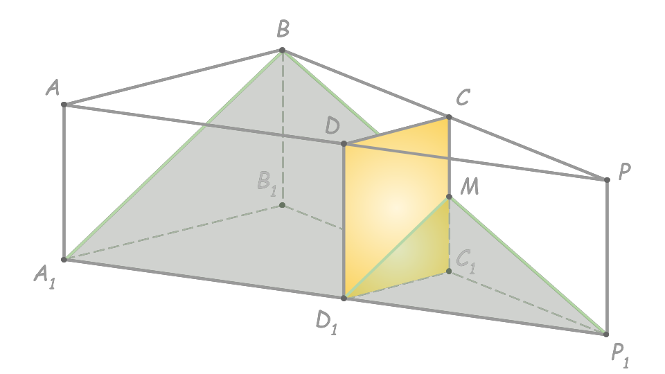 Задача 14 (314 вар. Ларина) Основание ABCD призмы ABCDD'C'B'A' — трапеция с основаниями AB = 2∙CD. а) Докажите, что плоскость BA'D' проходит через середину бокового ребра CC'. б) Найдите угол между боковым ребром и этой плоскостью, если призма прямая, трапеция ABCD прямоугольная с прямым углом при вершине B, BC = CD и AA' = √6∙CD. https://alexlarin.net/ege/2020/trvar314.pdf Указания к решению Рекомендую решать оба задания с помощью треугольной призмы ABPP'B'A' с сечением DCC'D'. Ответ: 30 градусов.