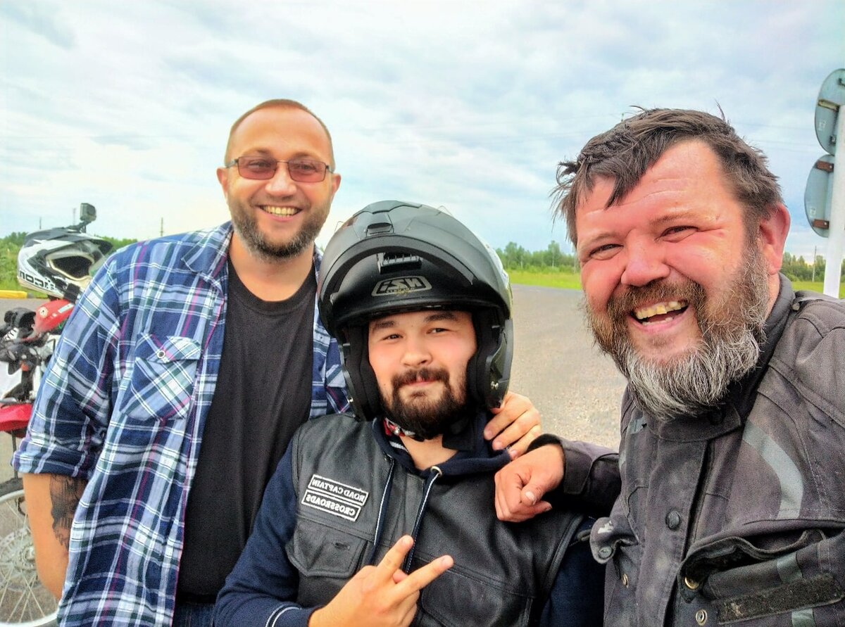 Только попрощался с Вовкой, и на ремонте моста мне пробил покрышку насквозь огромный саморез с резьбой М8 и здоровым ножом на конце, меня чуть не размотало по всей дороге, еле поймал мотоцикл у отбойника. Пока бортировал колесо, остановилось человек десять: то на машине, то на фуре, то на мотоциклах, я задолбался каждого благодарить и объяснять, что справлюсь сам. Потом подъехал Лёха Сквозняк с предложением помочь, начал мне дарить всякие ништяки, еле отмазался. Зато, за время ремонта я подружился с тремя замечательными людьми. Наверное, именно для этого с нами что-то и происходит в дороге.