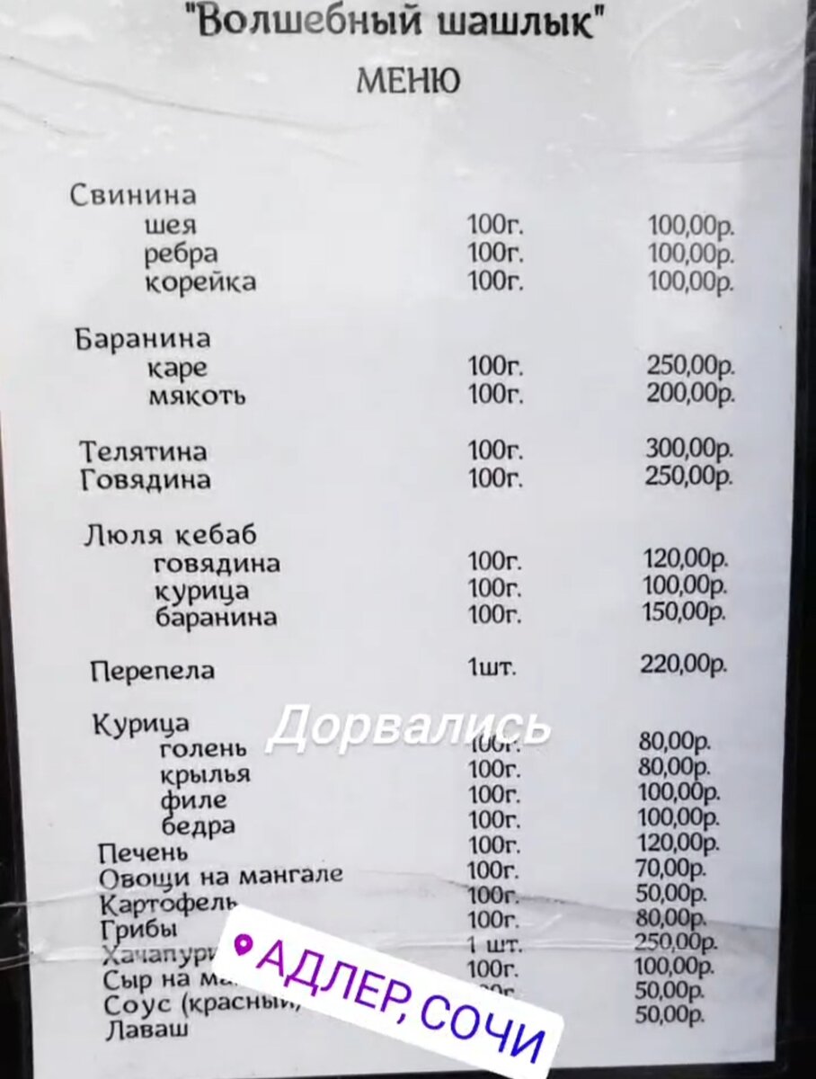 Цена 100 рублей брали шею, мясо вообще во рту тает. Волшебный шашлык называется.