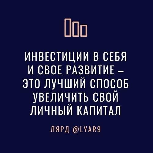 Если вы серьезно хотите заняться бизнесом, тогда одним из важнейших вопросов, на который вам стоит обратить внимание – это инвестиции в себя. 1. Здоровье Без здоровья достаточно сложно вести любые дела. Но об этом мало кто задумывается до момента наступления критической ситуации. 2. Психологическое здоровье Здесь существует целый комплекс мер, введение в жизнь которых, поможет вам в любой ситуации оставаться уравновешенным, спокойным и уверенным в себе. 3. Внешность Ваша внешность – это ваша визитная карточка! От вашего внешнего вида напрямую зависит и ваш внутренний настрой. Ощущение, что вы одеты с иголочки, в те вещи, которые идеально вам подходят, вы будете излучать уверенность в себе, которую окружающие обязательно заметят. А их внимание – это именно то, что вам нужно. 4. Навыки и умения У вас уже есть определенный набор навыков и умений, которые вы получили в течение жизни. Развивайте их! Помните, инвестиции в себя окупаются!