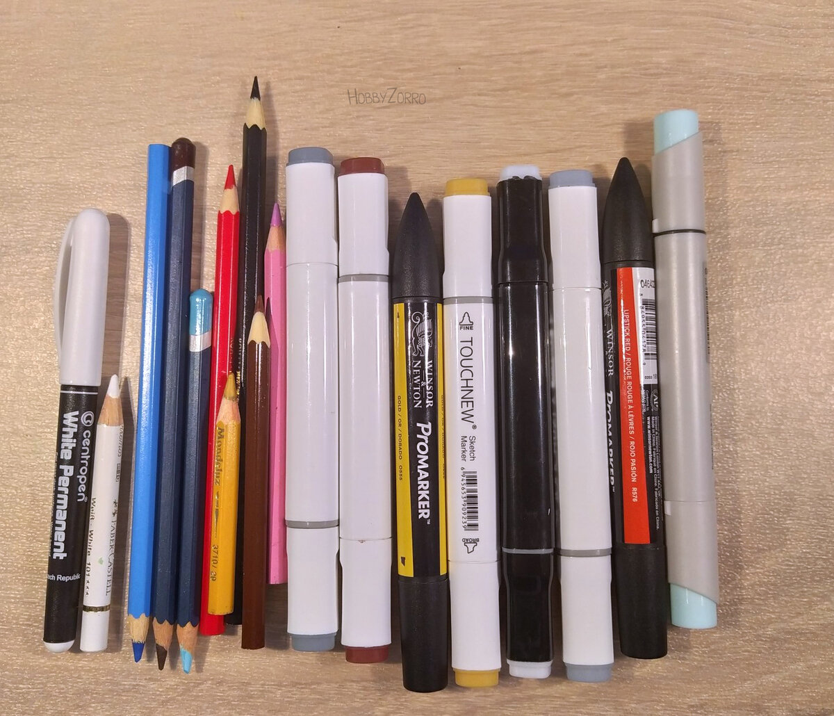 Помимо цветных карандашей я так же использую белый маркер от Centropen, чтобы нарисовать узоры на зонтике и сапогах:
