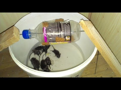 Простая и эффективная мышеловка своими руками из ведра. Мышеловка из ведра. В этой мышеловке используется вращающийся барабан, сделанный из алюминиевой или пластиковой банки. Через банку продет стальной стержень, который вставлен в ведро. Банка, на стенку которой помещается приманка, насажена на стержень и может свободно на нём вращаться. Если мышь решит полакомиться приманкой и поднимется вверх по рампе, то ей придётся залезть на банку, Так как банка может свободно вращаться на оси, то мышь, оказавшись на банке, потеряет равновесие и свалится в воду. Эта мышеловка негуманного типа, хотя если использовать глубокое ведро без воды, то мыши не погибнут и их можно будет выпустить где-нибудь подальше от дома. Эта мышеловка может использоваться так же на садовом участке, в этом случае рампа не нужна, а ведро следует вкопать на одном уровне с поверхностью земли.