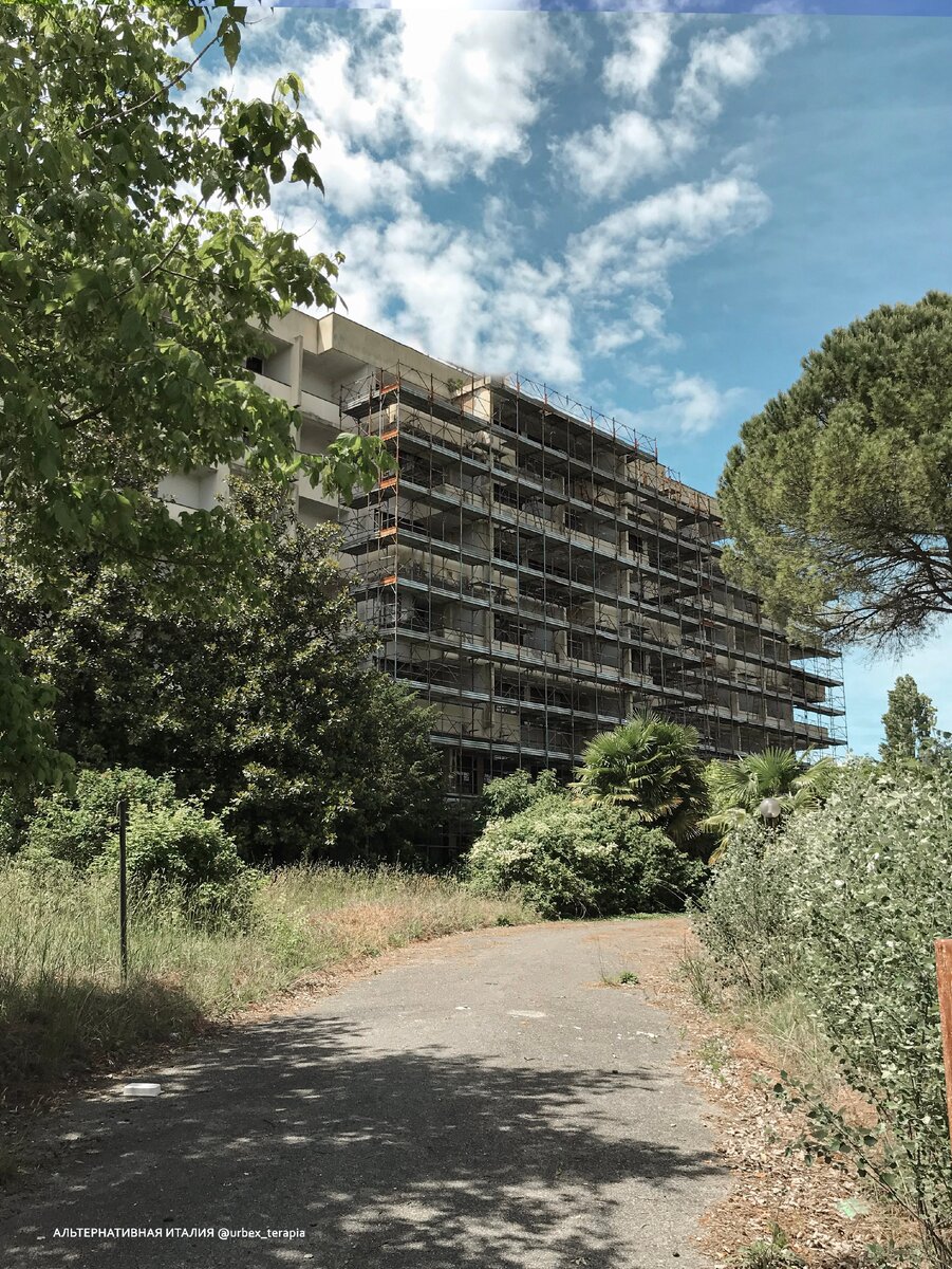 У него был шанс на спасение. Проект по реконструкции одобрили, стены обнесли строительными лесами и даже начались ремонтные работы. Но потом все остановилось. Отель стоит заброшенным более 9 лет.