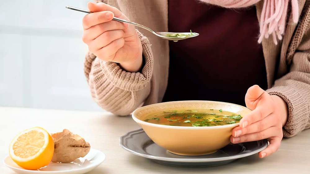 Белки должны поступать преимущественно из животных продуктов – мяса, яиц, молочных продуктов, в них присутствуют все аминокислоты. Если есть совсем не хочется, то следует пить куриный бульон. В нем присутствуют белок и минералы, способствующие снижению температуры, отделению мокроты, легкому откашливанию.