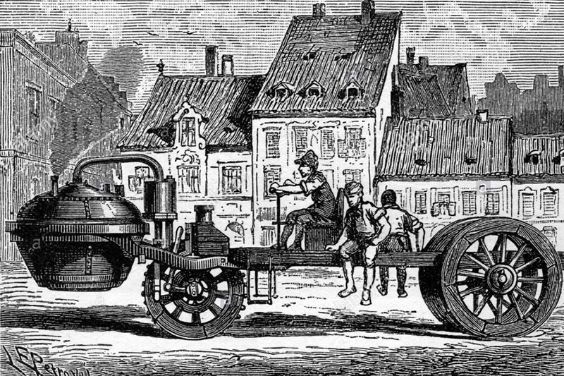 Это существо называлось fardier à vapeur, что в переводе означало «паровая телега». В современном понимании она была скорее грузовиком, чем легковой машиной. Она была скорее трициклом, чем легковой машиной. Она была скорее взрывом в ванной, чем легковой машиной.