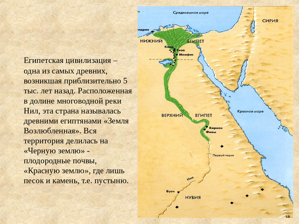 (2) Естественная защита. По сравнению с другими странами, Египет был в относительной безопасности от вторжений, так как с севера его омывало море, а с запада, юга и востока государство окружала пустыня.