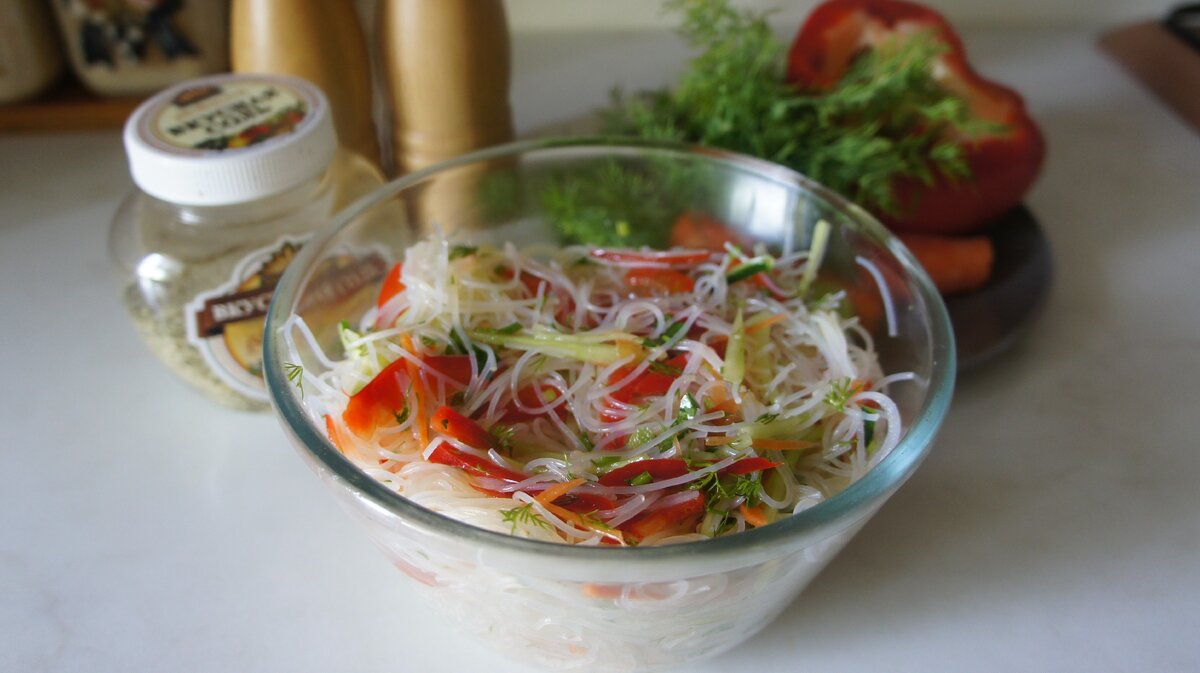 Летний и очень легкий салатик Фунчоза с овощами. Отличный вариант, для тех, кто на диете.