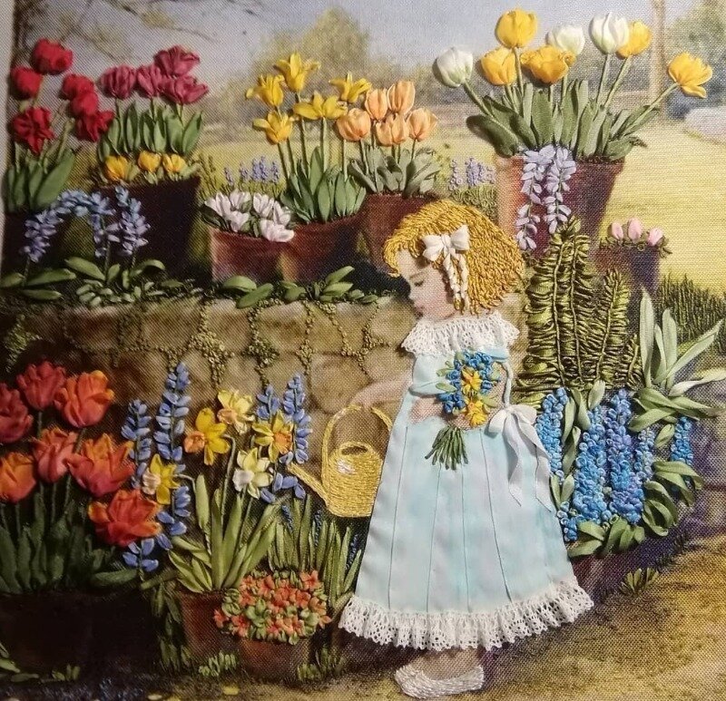 Для этой вышивки Наталья взяла за основу работу художника Дэниела Риджуэя Найта. Потрясающая картина выполнена шелковыми лентами, окрашенными вручную. Сложная техника делает вышивку еще ценнее.