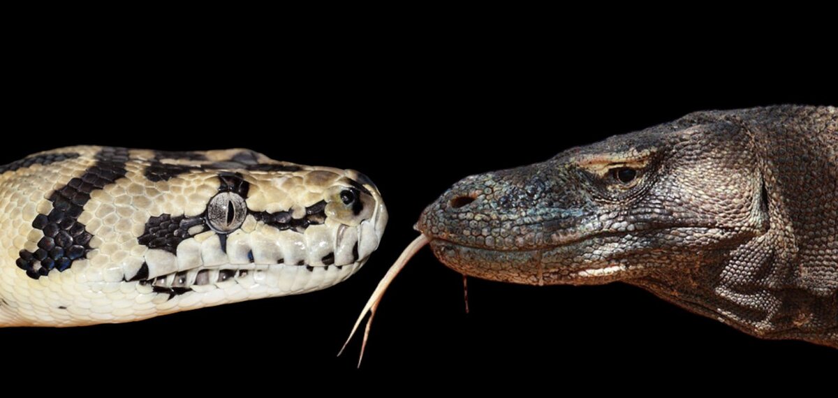 Схватка гигантов: питон против варана. Сражение, в которой сложно определить победителя заранее